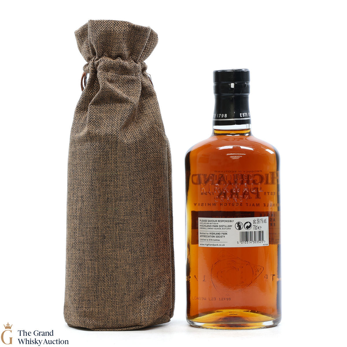 This bottling is part of Highland Park's Single Cask Series and was bottled exclusively for the Highland Park Appreciation Society. Distilled in 2003, this single malt was matured for 13 years in refill butt #2115 at the cask strength of 59.1% ABV. With only 576 bottles available, this is an extremely limited edition.