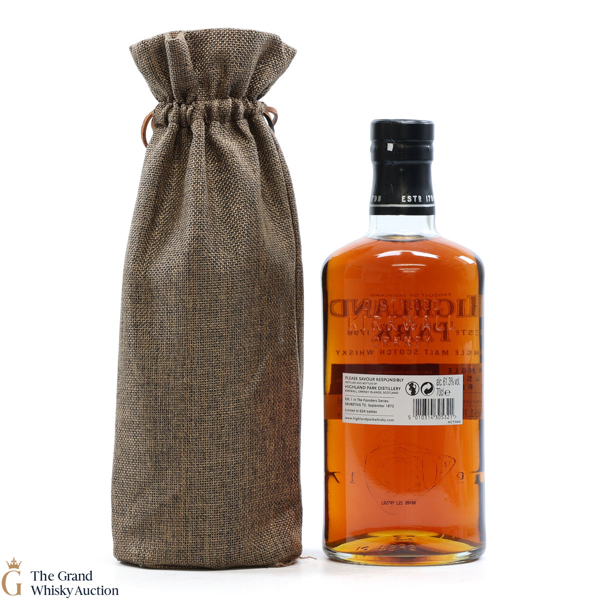 This bottling is part of Highland Park's Single Cask Series and was bottled exclusively for Grundtvig. This is edition 1 in the Founders series. Distilled in 2003, this single malt was matured for 13 years in refill butt #5715 and bottled at the cask strength of 61.3% ABV. With only 624 bottles available, this is a limited edition.
