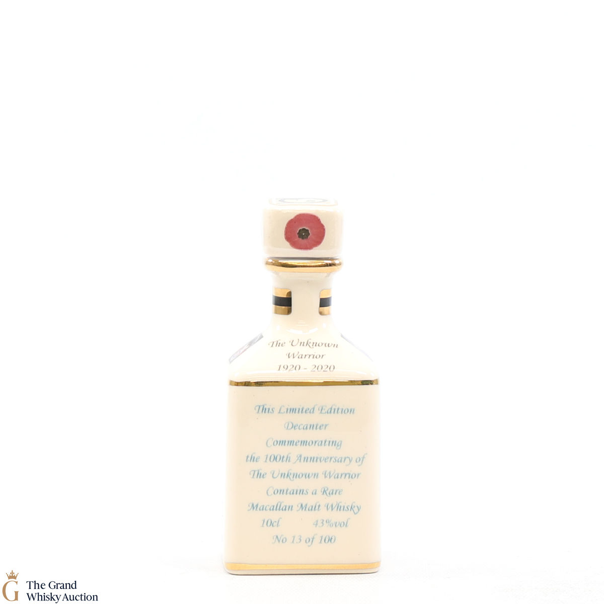 A mini decanter commemorating the 100th Anniversary of The Unknown Warrior. Filled with a rare Macallan, this is one of 100 bottles released.