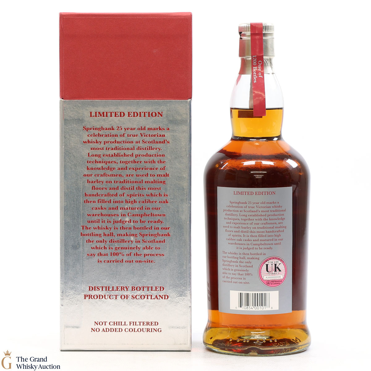 Due to the various ages of bottles and their seals, the condition of liquid is at the buyer's discretion and no claim can be lodged against failure/leakage in transit. Loss and breakage cover is available at 3% of the hammer price as standard. If the lot is not insured, no claim can be lodged against the courier or The Grand Whisky Auction for breakage or loss in transit.