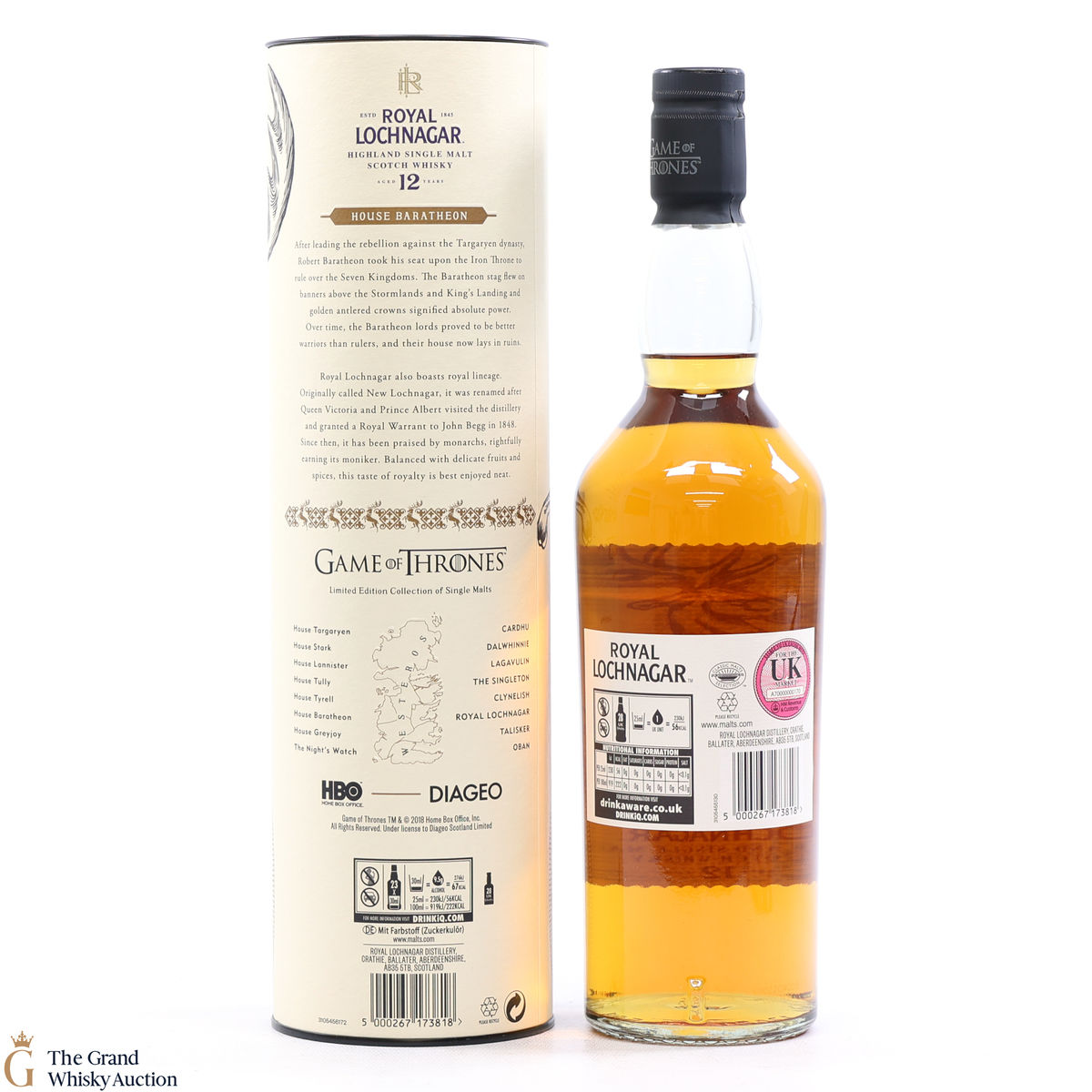 This is a limited-edition 12 year old single malt from Royal Lochnagar and it is part of Diagio's 2018 collaboration with HBO. Each single malt in the series relates to the land of houses of the Game of Thrones television series. The Royal Lochnagar bottle is decorated with a rampant black Stag, the sigil of House Baratheon that once flew on banners above the Stormlands and King’s Landing signifying absolute power.
