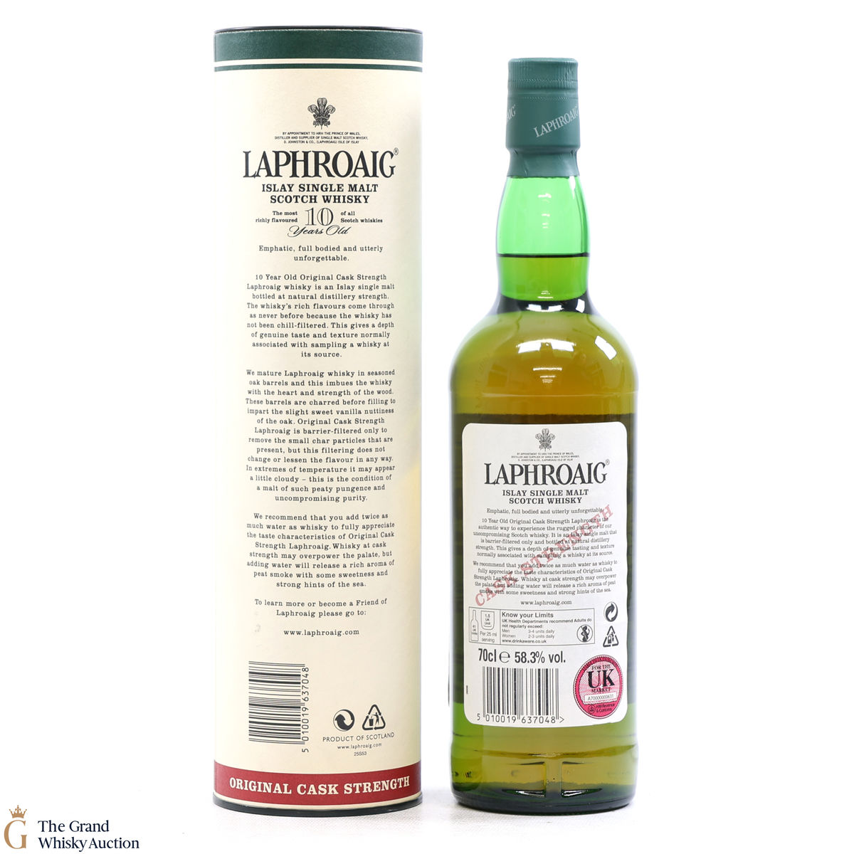 This bottling is from batch 004, original cask strength bottling of the medicinal 10 year old from Islay's bestselling distillery, Laphroaig. In making Laphroaig, malted barley is dried over a peat fire. The smoke from this peat, found only on Islay, gives Laphroaig its particularly rich flavour. This release was bottled at 58.3% in January 2012.