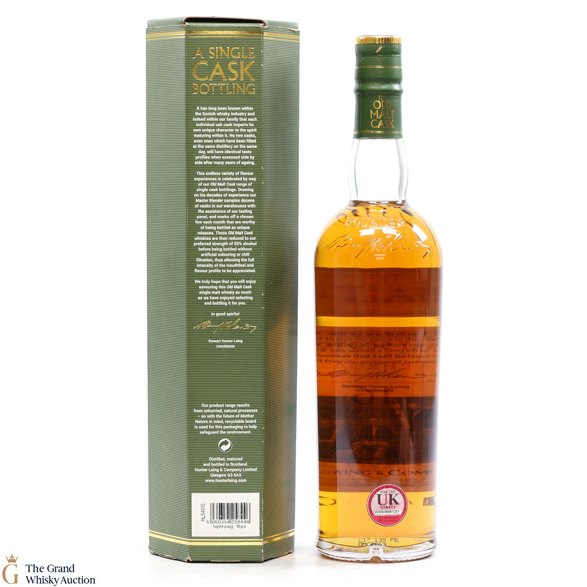 This bottle from The Old Malt Cask, distilled at Laphroaig Distillery in February 2001 and has been aged for 16 years in a refill butt before being bottled in 2017 by Hunter Laing for the Old Malt Cask series.