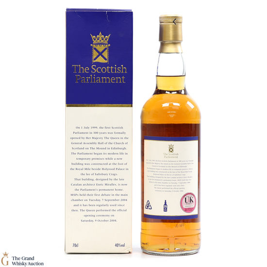 A blended malt with a minimum age of 15 years, this bottling was produced by Gordon and Macphail. It was selected exclusively for the Scottish parliament.