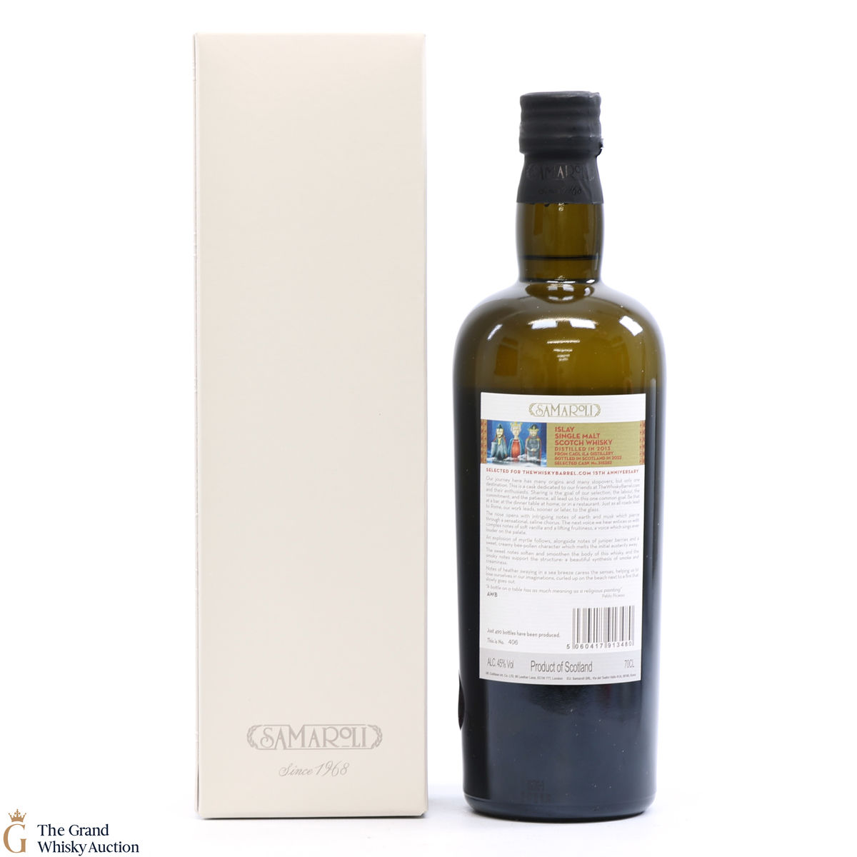 Distilled at Caol Ila in 2013 and matured in an oak cask #315282 before being bottled at 45% ABV. This bottling was released by independent bottler Samaroli for the 15th Anniversary of TheWhiskyBarrel.com.