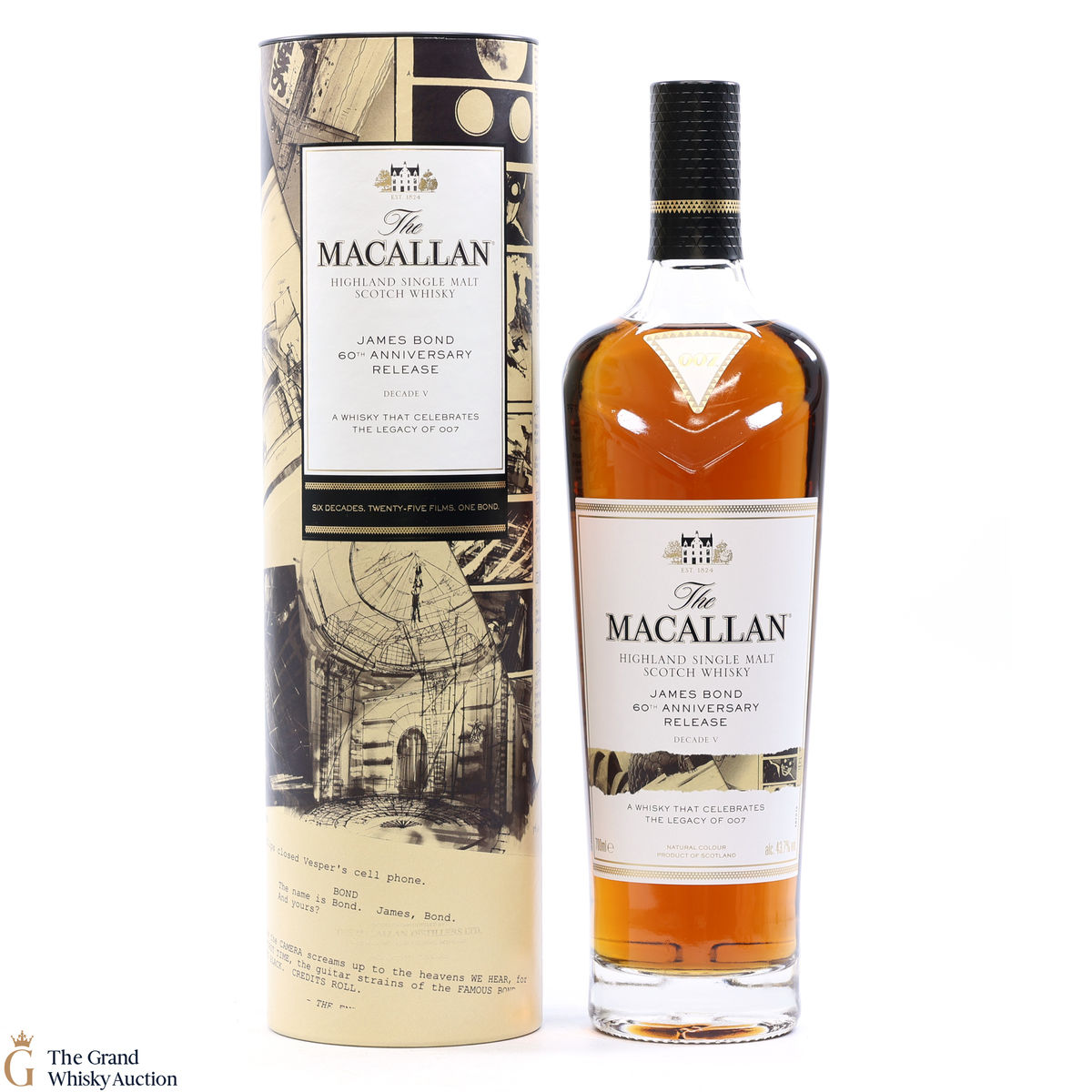 The remarkable James Bond 60th Anniversary Release is a celebration of 007 and The Macallan as modern innovators linked by their Scottish heritage. Each bottle’s packaging features an original illustrative design and colour to denote the decade it represents.