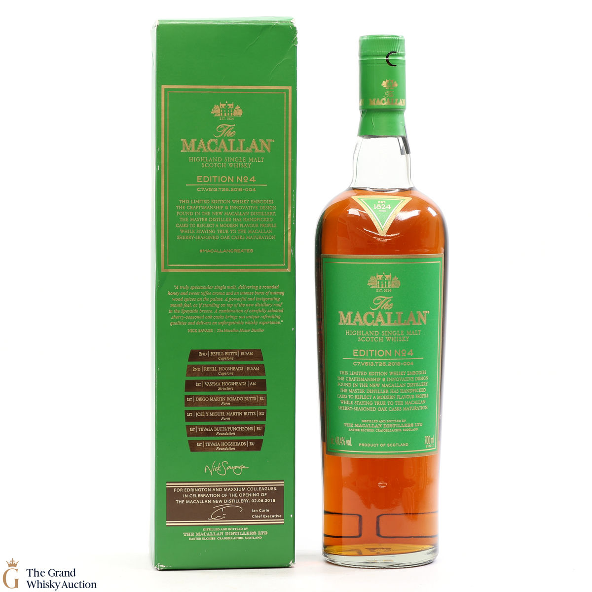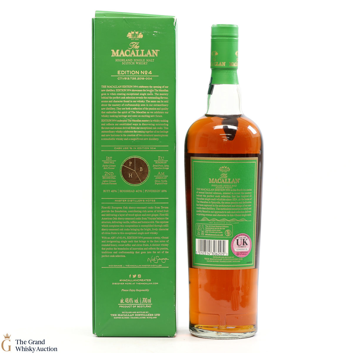 The fourth release in the Edition Series from The Macallan, this Speyside single malt is a celebration of the distillery's whisky making heritage, combining a unique selection of oak cask styles. Edition No.4 reflects the craftsmanship and pioneering design of the new Macallan Distillery.
