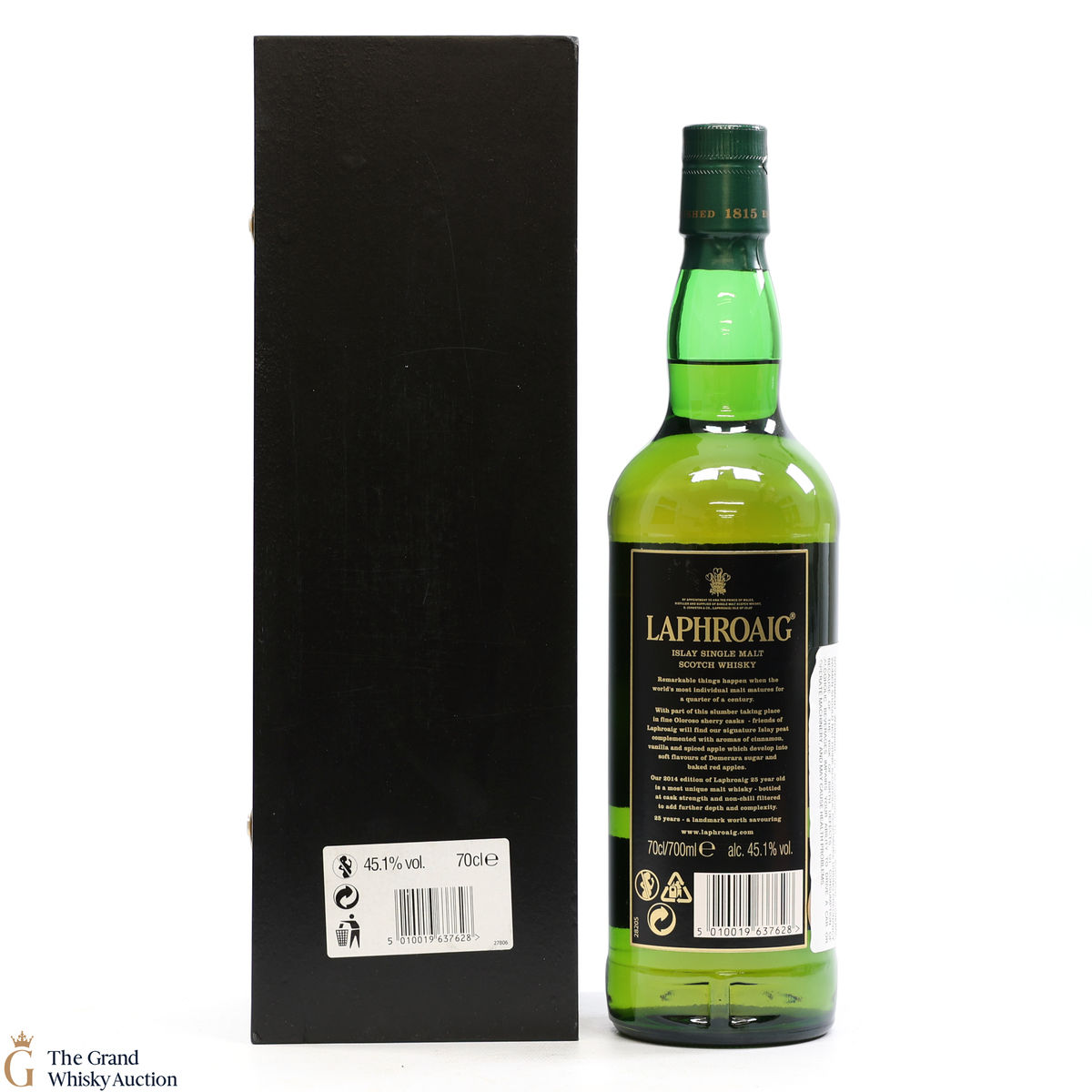 This is the 2014 annual release of Laphroaig 25 Year Old. This edition was matured in Oloroso sherry and American oak casks and bottled at 45.1%.