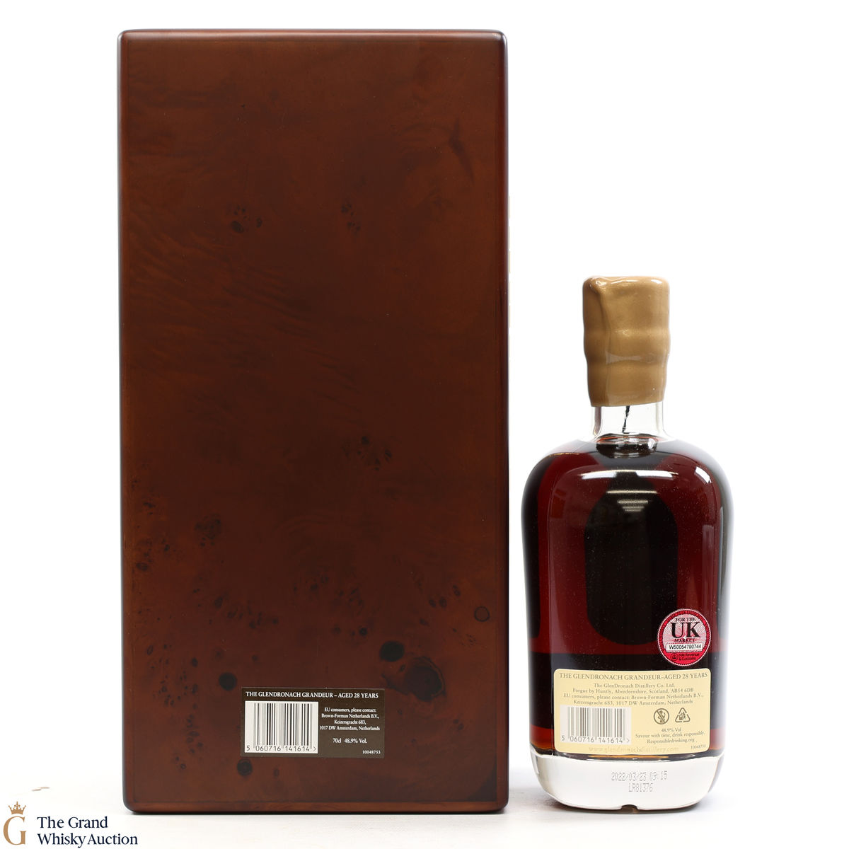 Due to the various ages of bottles and their seals, the condition of liquid is at the buyer's discretion and no claim can be lodged against failure/leakage in transit. Loss and breakage cover is available at 3% of the hammer price as standard. If the lot is not insured, no claim can be lodged against the courier or The Grand Whisky Auction for breakage or loss in transit.