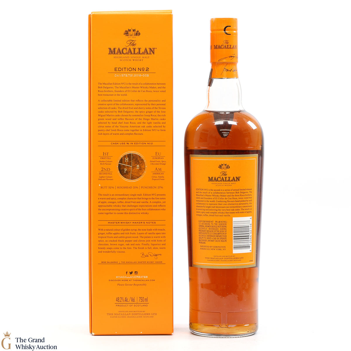 This is the second release from the Macallan Edition series. Edition No.2 is a collaboration between Macallan's master blender Bob Delgarno and legendary Spanish chefs Joan, Josep and Jordi Roca. The Rocas are the three brothers behind El Celler de Can Roca (named Best Restaurant in the World twice by Restaurant magazine). This single malt was drawn from a combination of sherry puncheons, butts and refill hogsheads.