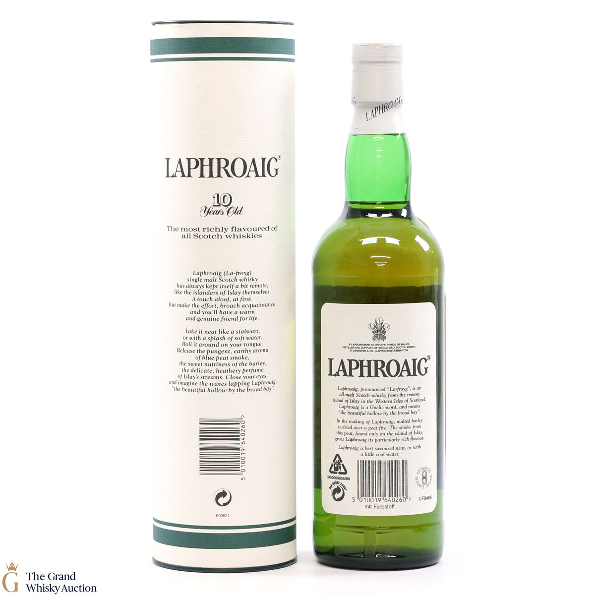 A 70cl of the medicinal 10-year-old from Islay's bestselling distillery, Laphroaig. In making Laphroaig, malted barley is dried over a peat fire. The smoke from this peat, found only on Islay, gives Laphroaig its particularly rich flavour.