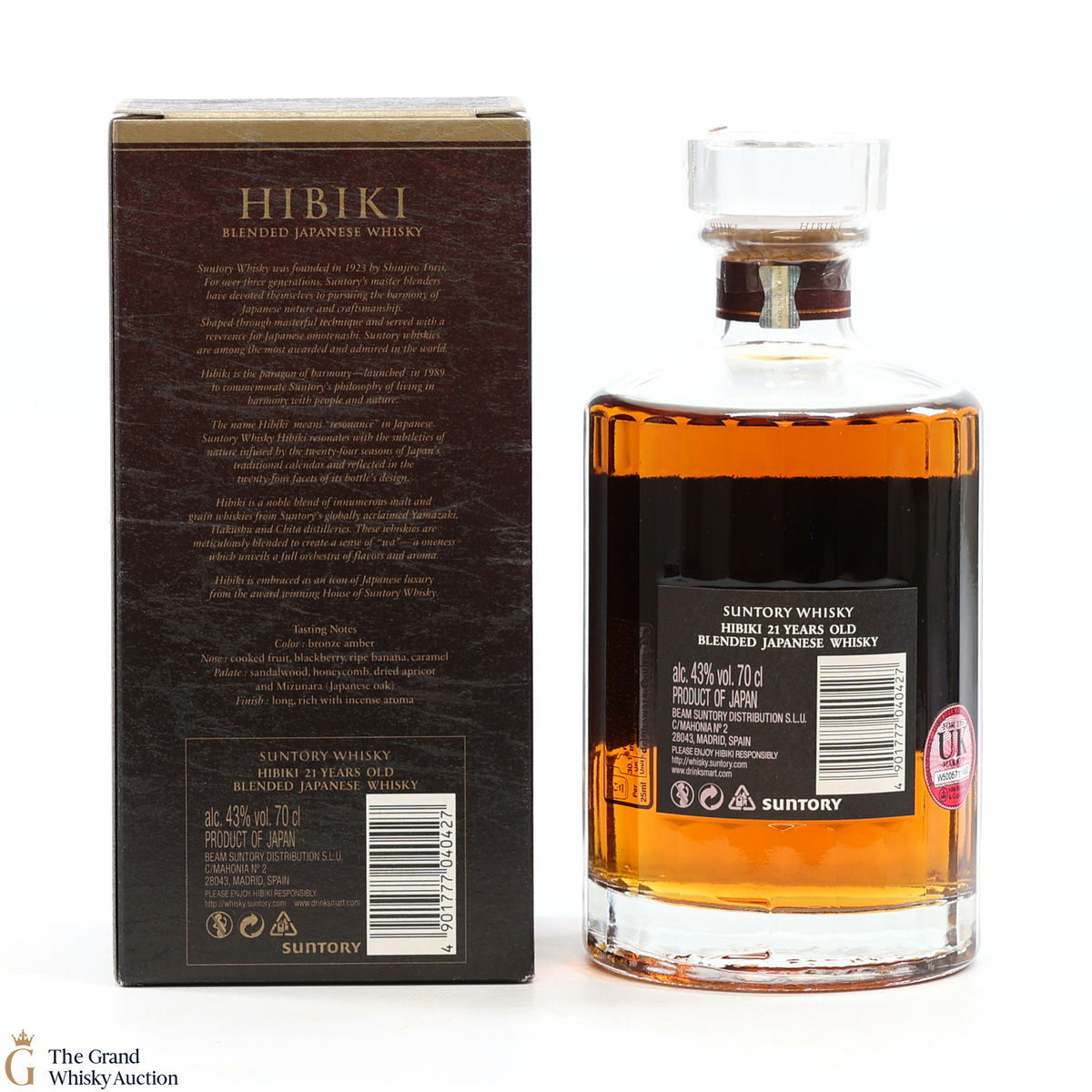 Hibiki 21 Year Old is a very popular blended whisky from Suntory. It is made up of a blend of specially selected mature malt and grain whiskies aged over 21 years. The key Yamazaki sherry casked malt is vatted with other carefully chosen mellow unblended grain whiskies over 21 years old.