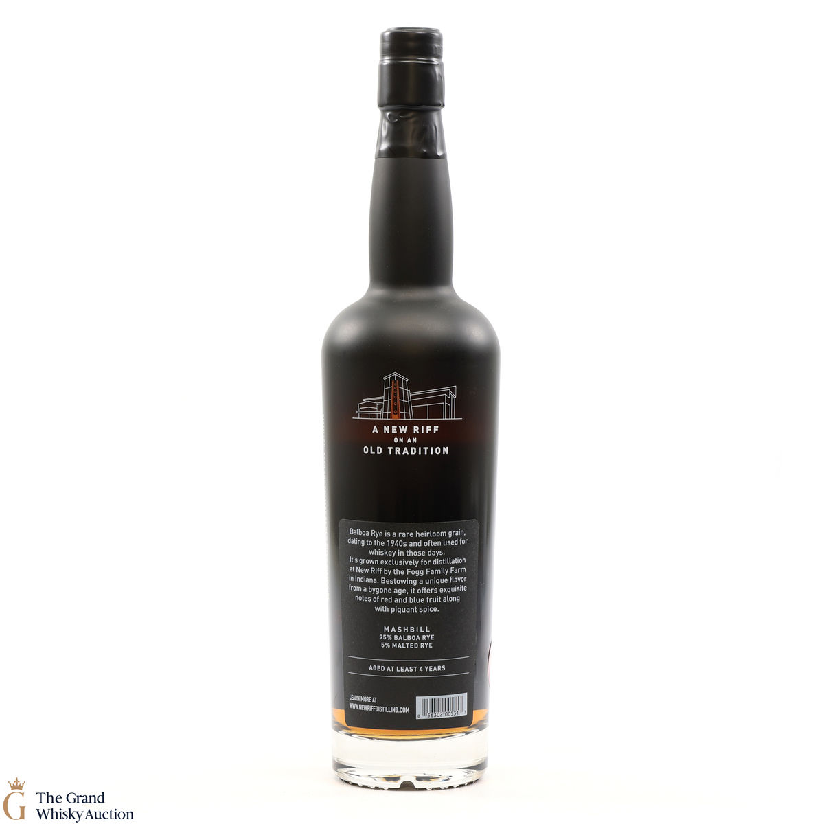 This Kentucky straight rye whisky was distilled with a new riff on an old tradition. This straight rye whisky is made with rare heirloom Balboa rye grain, grown exclusively for New Riff distilling.