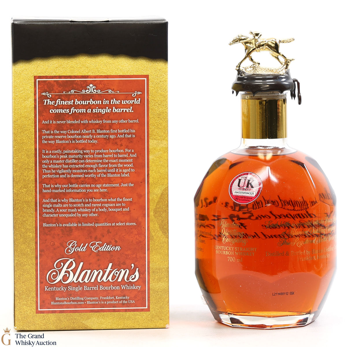 PLEASE NOTE: The wax seal on Blanton's bottles are prone to cracking in transit due to their design. Therefore, as stated in our T&C’s, we do not and will not accept liability should the seal be breached, broken, split or leak in transit. Additionally, please know due to the design of the internal cardboard packaging that surrounds the top of the bottles, it too may be torn. By bidding on this lot you have understood this to be true. Insurance is for complete breakage or loss in transit only.