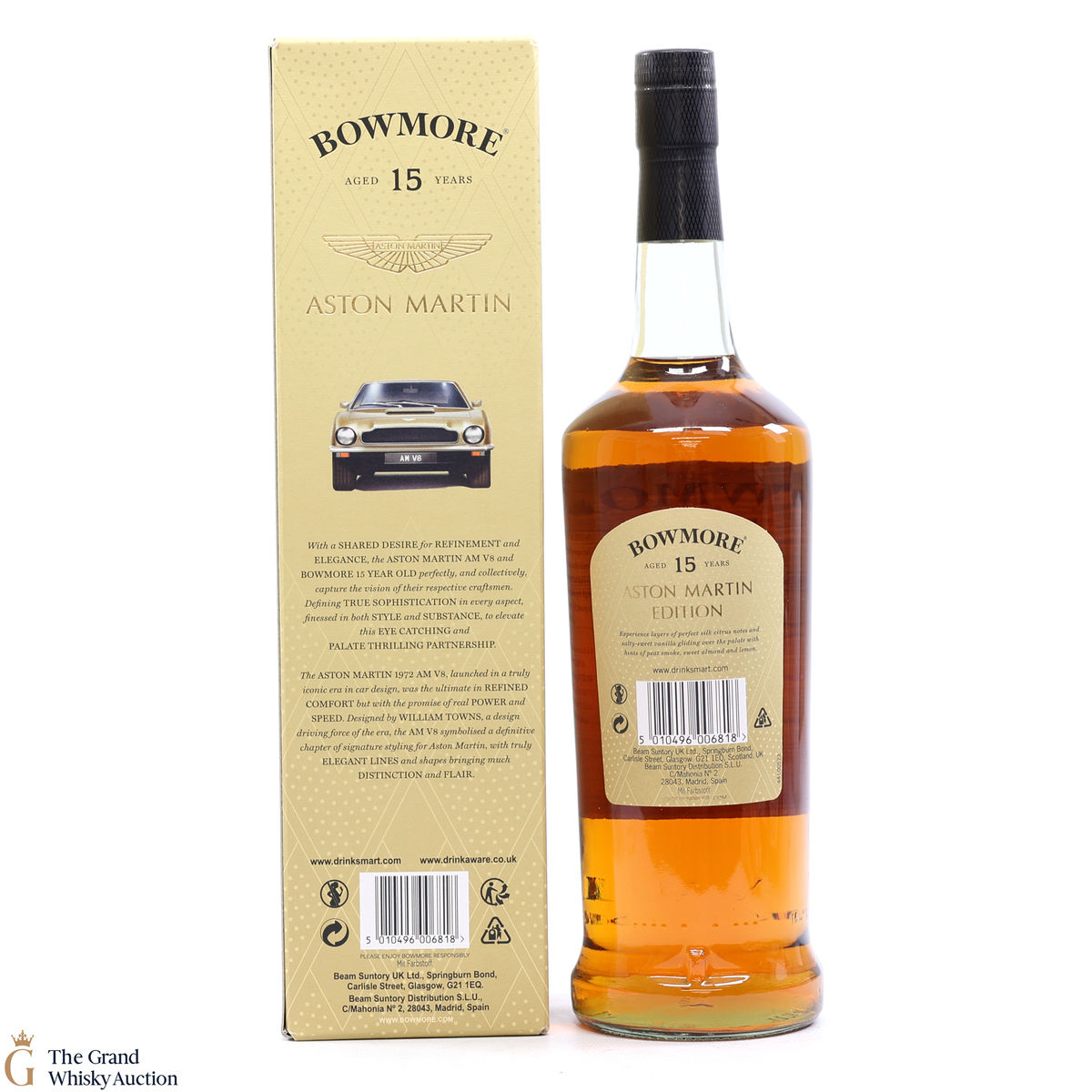 Edition 5 of the Bowmore x Aston Martin collaboration celebrates the iconic Aston Martin AM V8. Designed by William Towns, an elegant shape with ultimate comfort, power and speed, this 1972 motor was released in an iconic era of car design. A great pairing for the golden and elegant 15 Year Old, married in 1st fill bourbon casks to create a refreshing, silky peat-smoked character with notes of citrus.