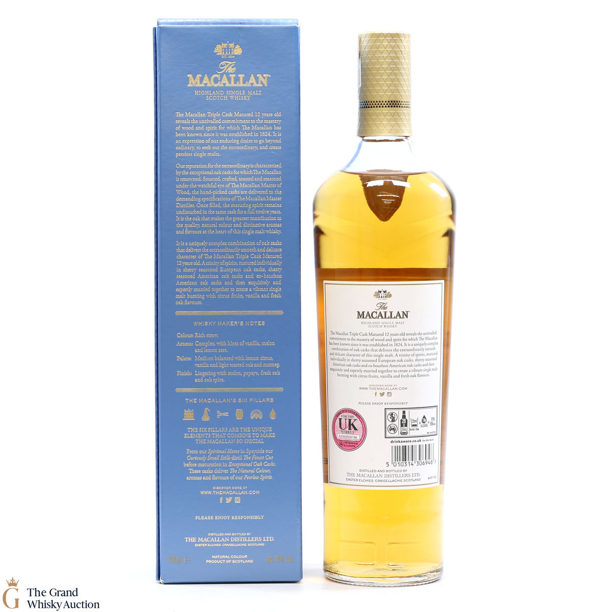 The 12 year old single malt was matured for 12 years and drawn from a combination of European sherry seasoned casks, American sherry seasoned casks and American ex-bourbon casks. It is part of Macallan's Triple Cask range which was launched in 2018, taking the place of the Fine Oak range.