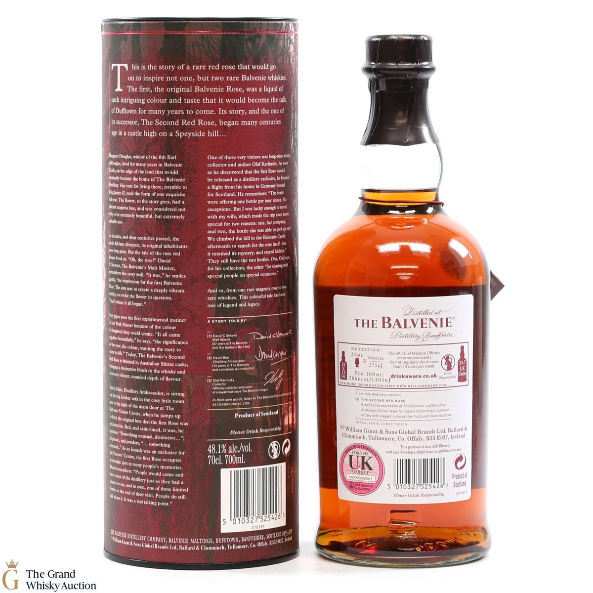 Inspired by the history of Balvenie Castle, this single malt was matured for a total of 21 years, being finished in Australian Shiraz Casks. The story of David C Stewart has created two extraordinary red roses, this is the second red rose and story number 5 in the series. Bottled at 48.1% ABV.