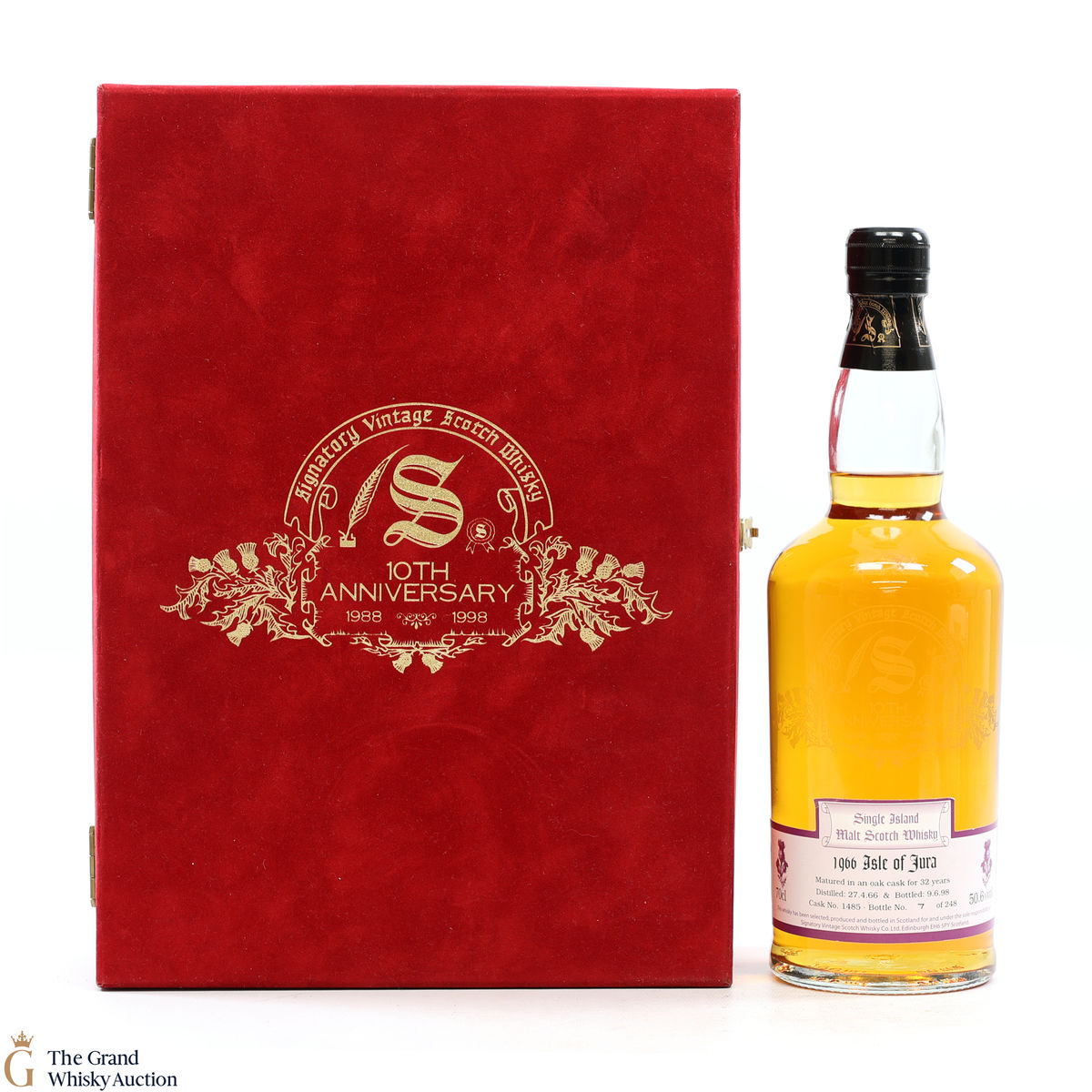 This single malt was distilled in April 1966 at the Jura Distillery. Matured in an oak cask for 32 years before being bottled from cask #1485 for the 10th Anniversary of Signatory Vintage in 1998.