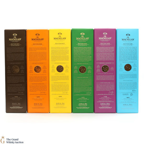 This lot brings together the Macallan Edition set to date, comprising of Edition no. 1, 2, 3 4, 5 & 6 in the annual limited edition series.