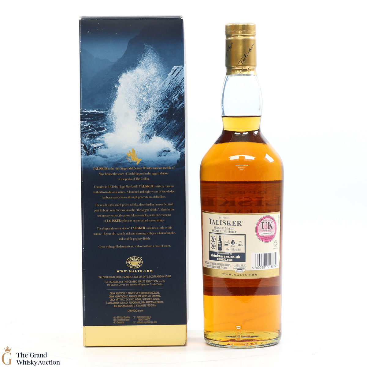 Time has mellowed but not tamed this powerful 18 year old Talisker, made beside Loch Harport in the shadow of the Cuillin range. A rich, sweet nose introduces familiar, smoky maritime aromas. Full-bodied, this smooth malt open sweetly, then becomes more assertive, with a whiff of smoke. It has an unmistakeable, richly warming finish, more subtle here than in the 10 year old.