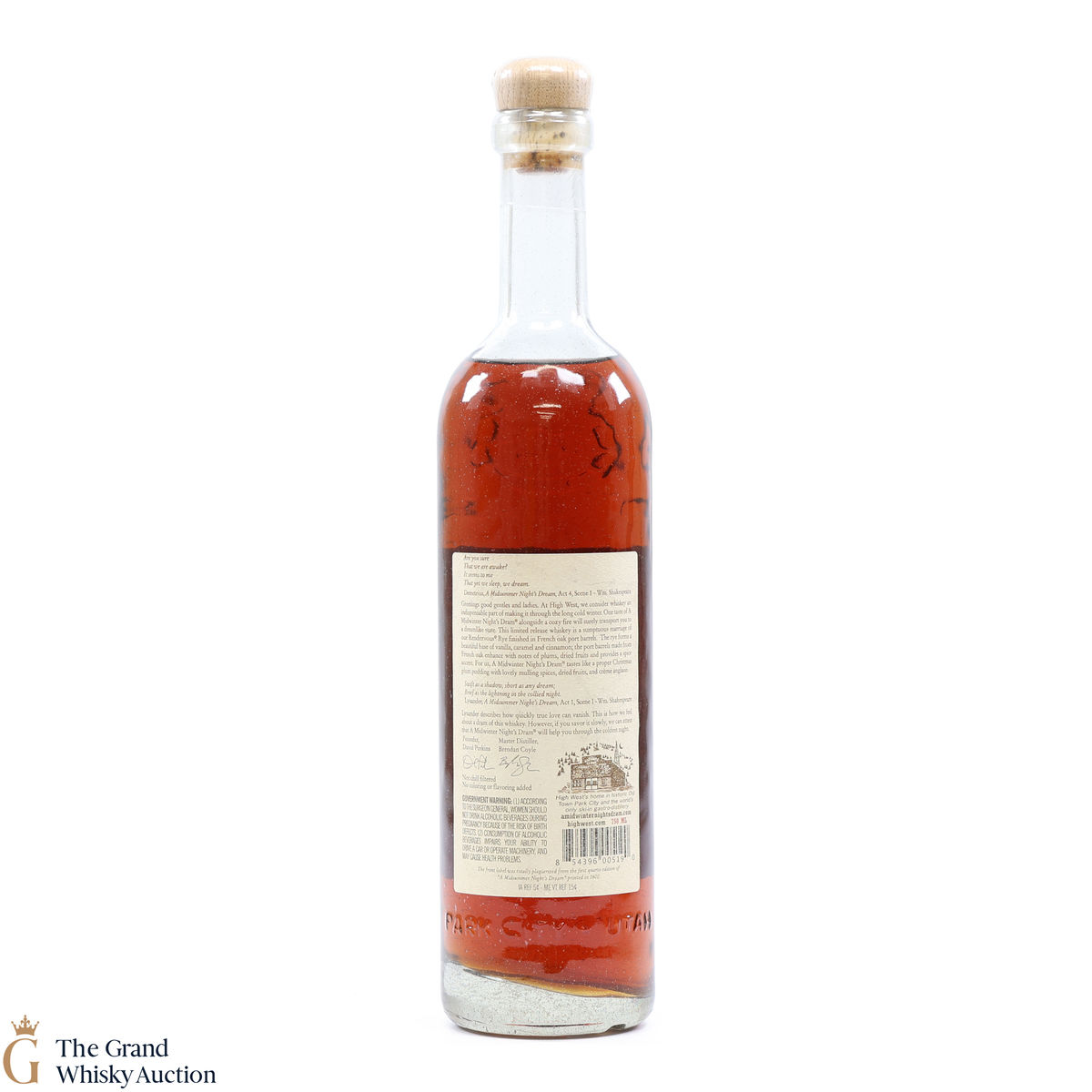 This is a blend of straight rye whiskeys, finished in french oak port barrels. Bottled by High West Distillery, Park City, Utah.