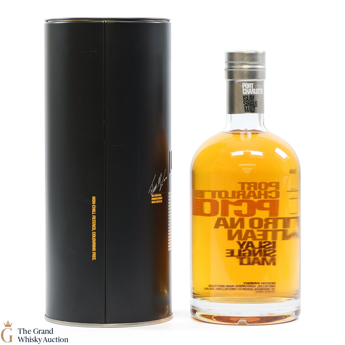 Port Charlotte PC10, produced by Bruichladdich Distillery, is a heavily peated spirit. It was the first release of heavily peated Port Charlotte and was produced in 2001 from some of the first spirits to be produced after the distillery's reopening. The single malt was bottled at 10 years old and was limited to 6000 bottles.