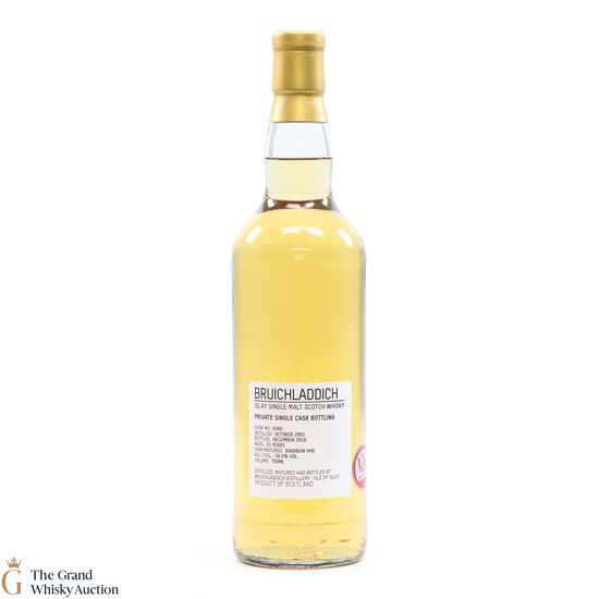 This is a private cask bottling which was distilled in October 2001 on the shores of Lochindaal, an Islay Single Malt Scotch Whisky from the Bruichladdich Distillery.