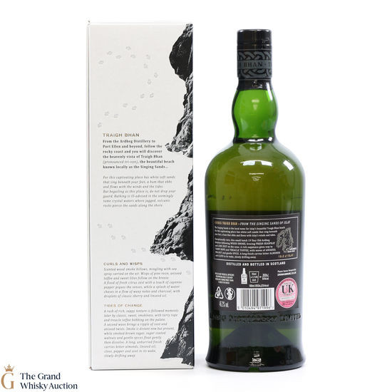 Matured in American oak and Oloroso sherry casks – Ardbeg Traigh Bhan is a 19 year old whisky and the Distillery’s 3rd small batch release. Inspired by Islay’s Traigh Bhan beach (known locally as the Singing Sands), this rare aged spirit is an enchanting reflection of the place to which it gets its name.
