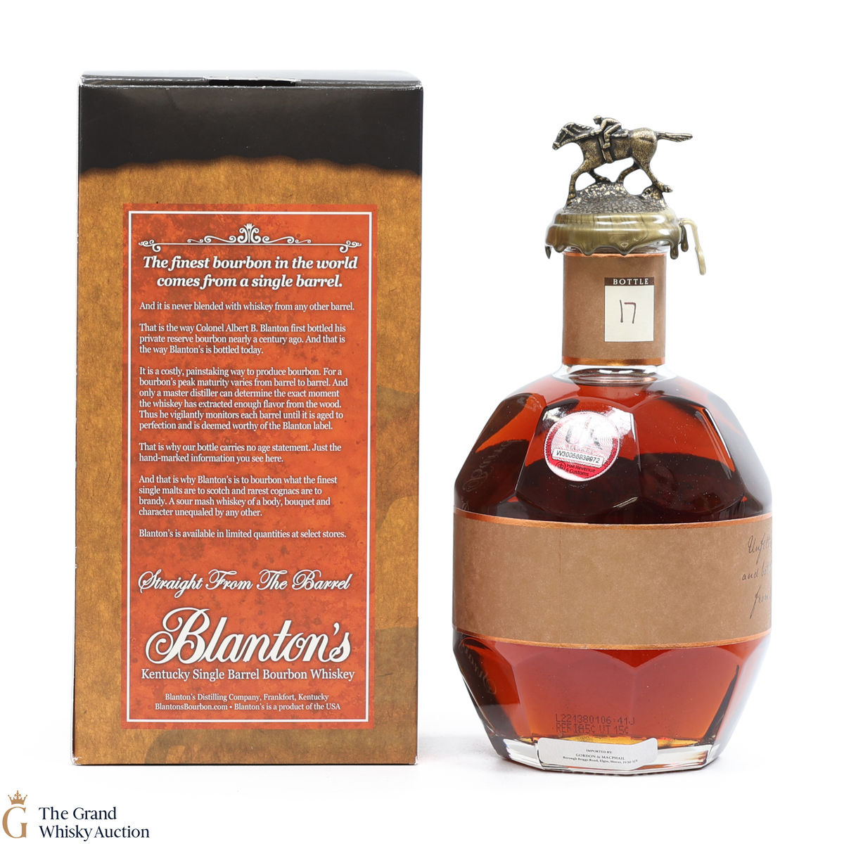 Due to the various ages of bottles and their seals, the condition of liquid is at the buyer's discretion and no claim can be lodged against failure/leakage in transit. Loss and breakage cover is available at 3% of the hammer price as standard. If the lot is not insured, no claim can be lodged against the courier or The Grand Whisky Auction for breakage or loss in transit.