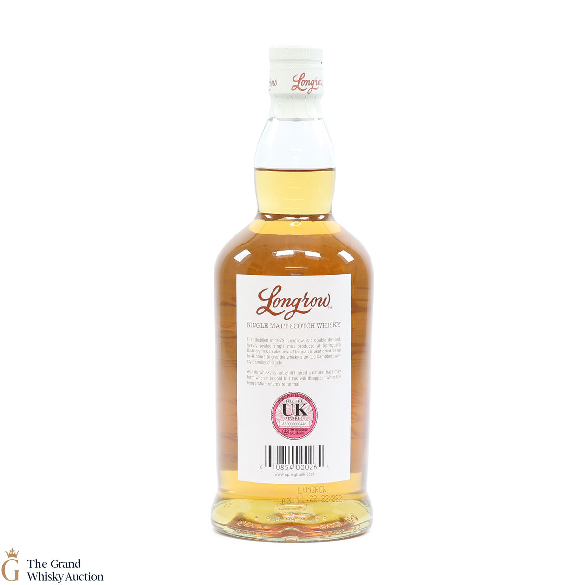 A bottle of Longrow Peated - This is essentially the awesome Longrow C.V. bottling in new packaging, which used to be Longrow's entry-level whisky. Longrow is Springbank's heavily peated whisky - this is a no age statement expression.