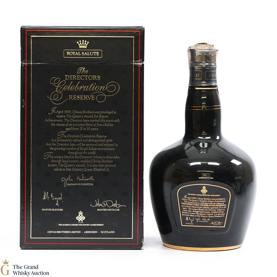 This finest blended whisky was aged for 15 to 30 years before being bottled by Royal Salute for their Directors Celebration Reserve.