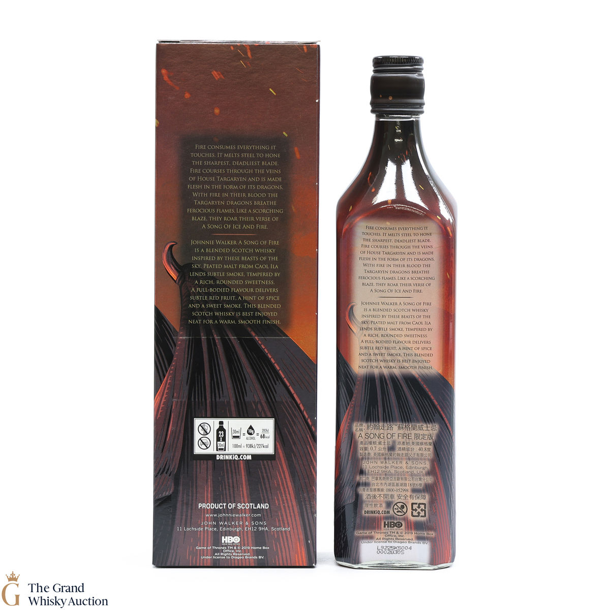 A limited-edition celebration and ode to Game of Thrones, Johnnie Walker A Song of Fire. The subtle notes of the smoke and peated malts from the Caol Ila distillery within the blend pay homage to the Dragons of House Targaryen.