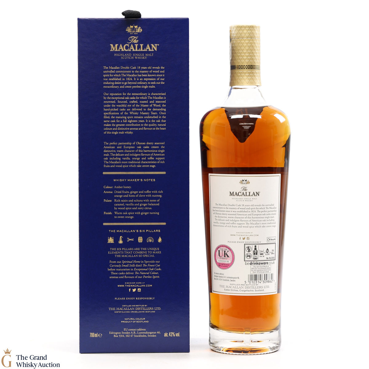 This 18 Year Old Macallan was matured in a combination of American and European Sherry oak for a minimum of 18 years. It is part of the Macallan Double Cask range, which marries the classic Macallan style and the sweetness of American oak.