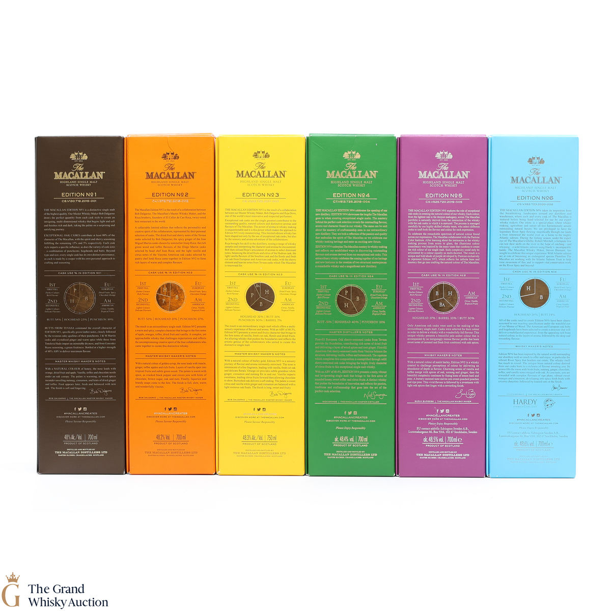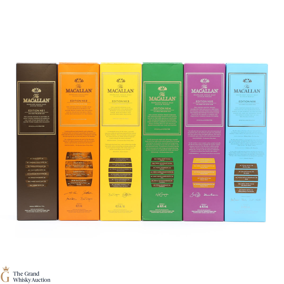 This lot brings together the Macallan Edition set to date, comprising of Edition no. 1, 2, 3 4, 5 & 6 in the annual limited edition series.
