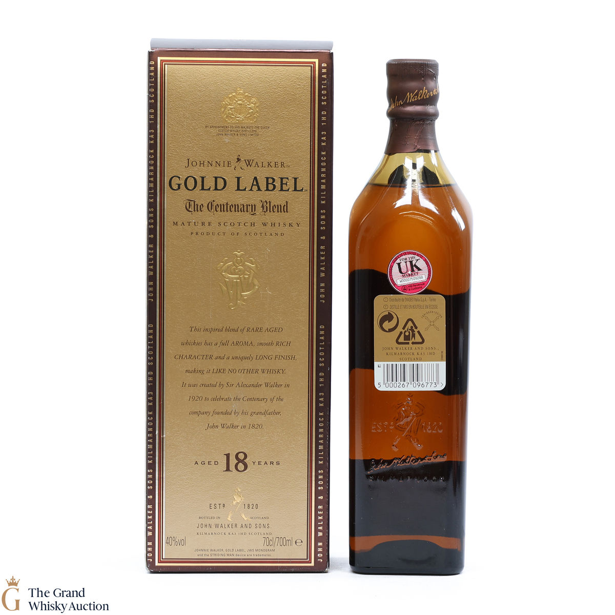 This is a blend of over 15 single malts. Originally, Gold Label was bottled at 18 years and labelled 'The Centenary Blend' by Sir Alexander Walker in 1920 to celebrate the centenary of the company founded by his grandfather John Walker in 1820.