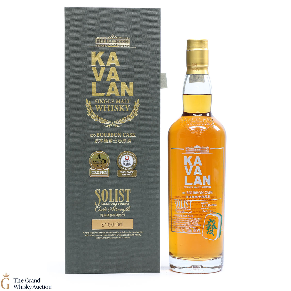 Matured in ex-bourbon cask number B141224080A this limited edition is one of just 161 individually numbered bottles released. Specially selected by the Kavalan Master Blender, it was bottled by hand at the distillery, without any colouring, chill-filtration at the natural cask strength of 57.1%.