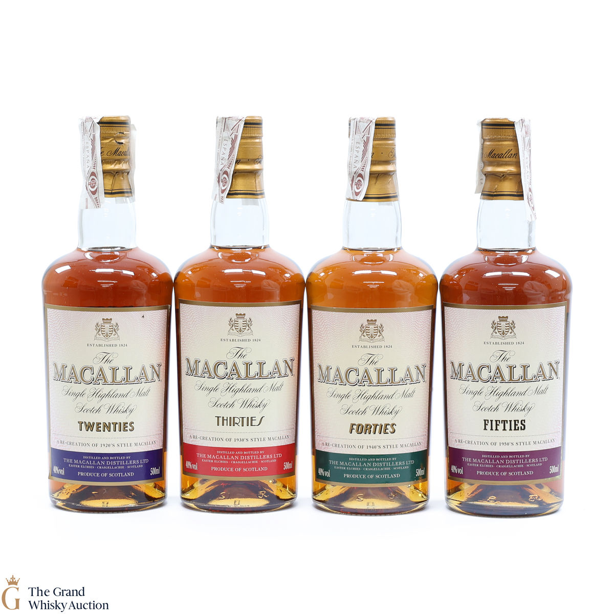 - Macallan 1940s: During the 1940s, with a shortage of sherry cask as a result of the Second World War, Macallan would refill their casks more often than is the current practice. This, combined with the use of peat to dry the barley, resulting in a whisky that was less spicy and peatier than modern day Macallan. 40%, 50cl.