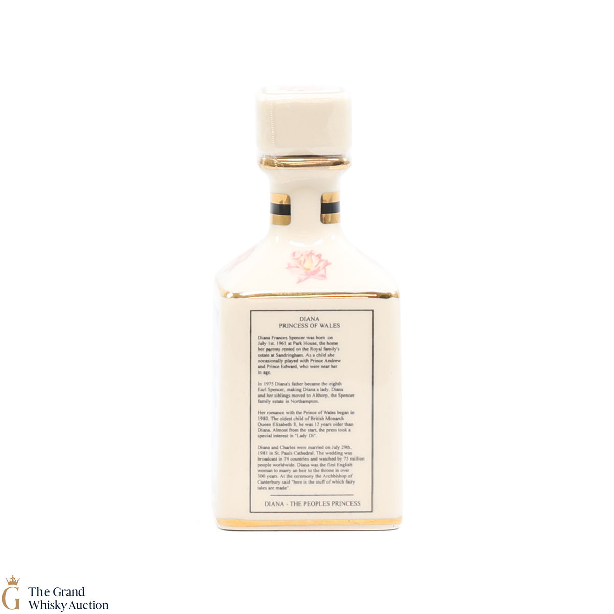 A mini decanter commemorating the life of Diana Princess of Wales. Filled with 40% ABV.