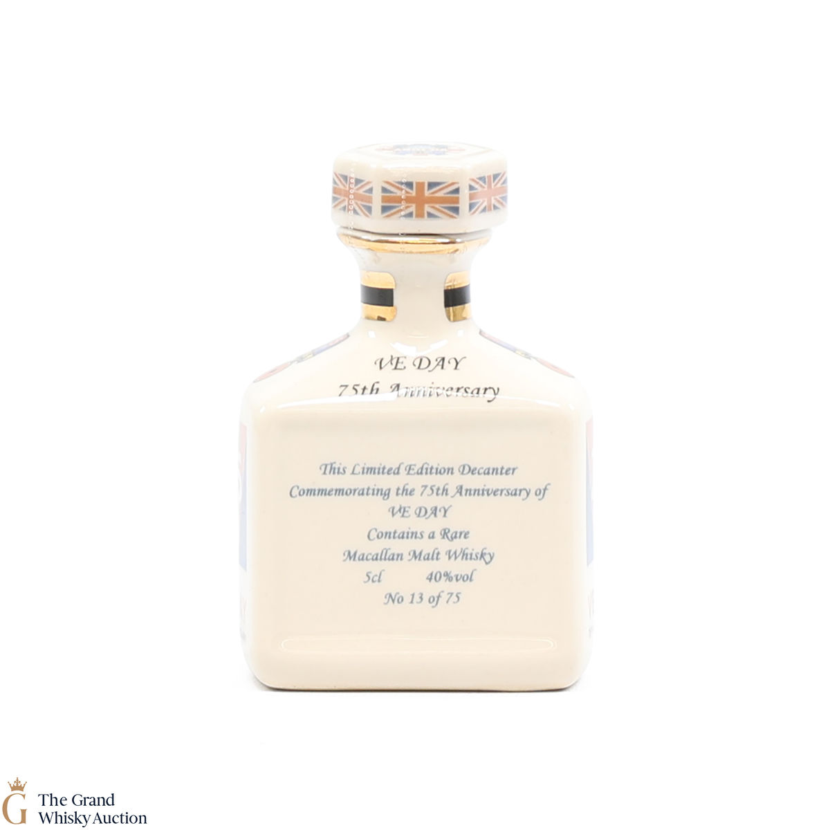 A mini decanter commemorating the 75 th anniversary of VE DAY. Filled with Macallan, this is one of 75 bottles released.