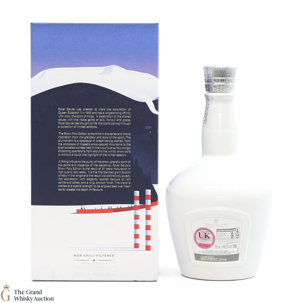 A fitting tribute to the purity of the snow, graceful spirit of the game, and elegance of the backdrop, Roya Salute's Snow Polo Edition is the result of 21 years of maturation in high-quality oak casks.