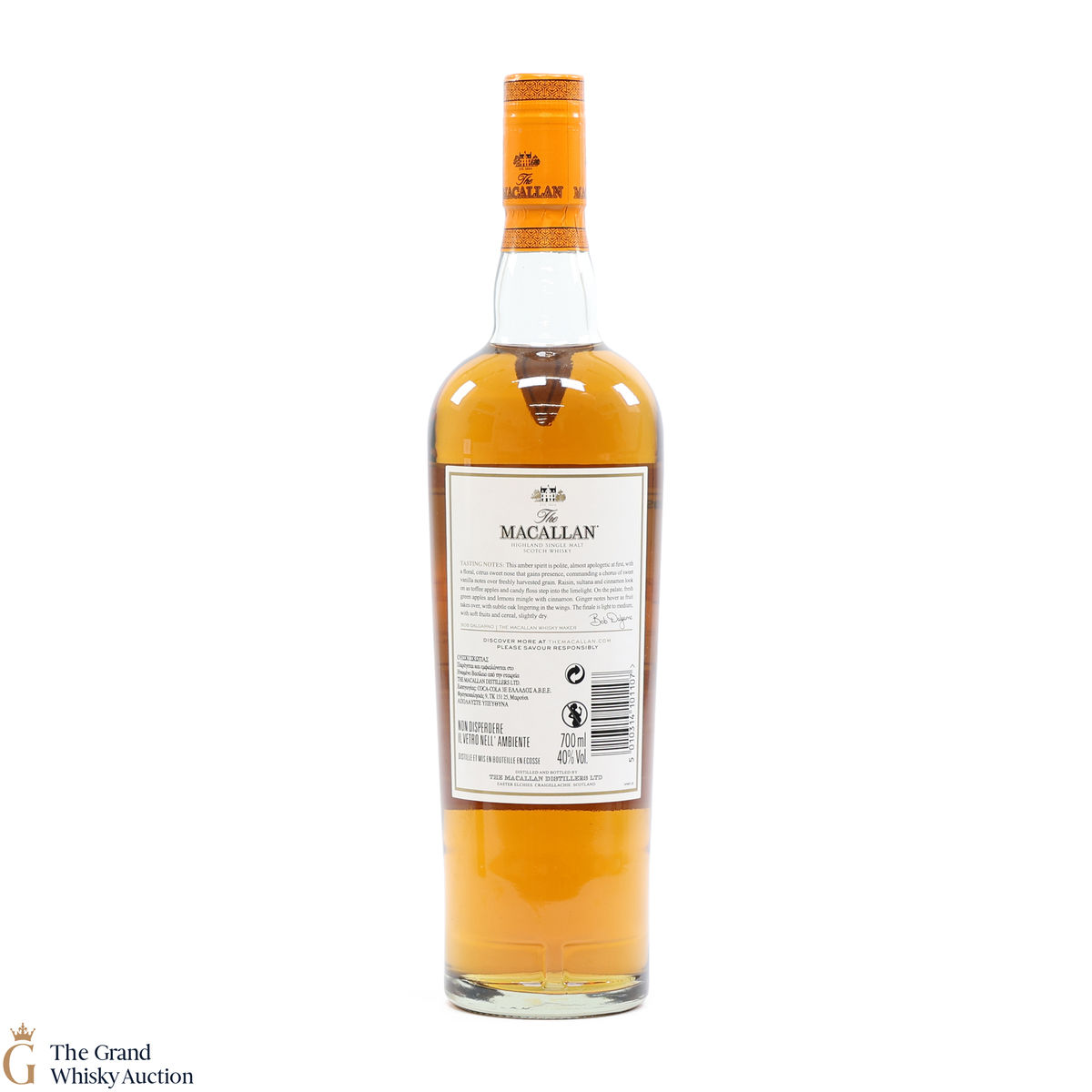 The Macallan Amber forms part of The Macallan 1824 Series which exemplifies their commitment to 100% natural colour, present in each and every Macallan single malt. This non-age statement range of Speyside single malts concentrates on colour; the theory is that by using 100% sherry casks and natural colour, the darker the whisky, the older and more complex.