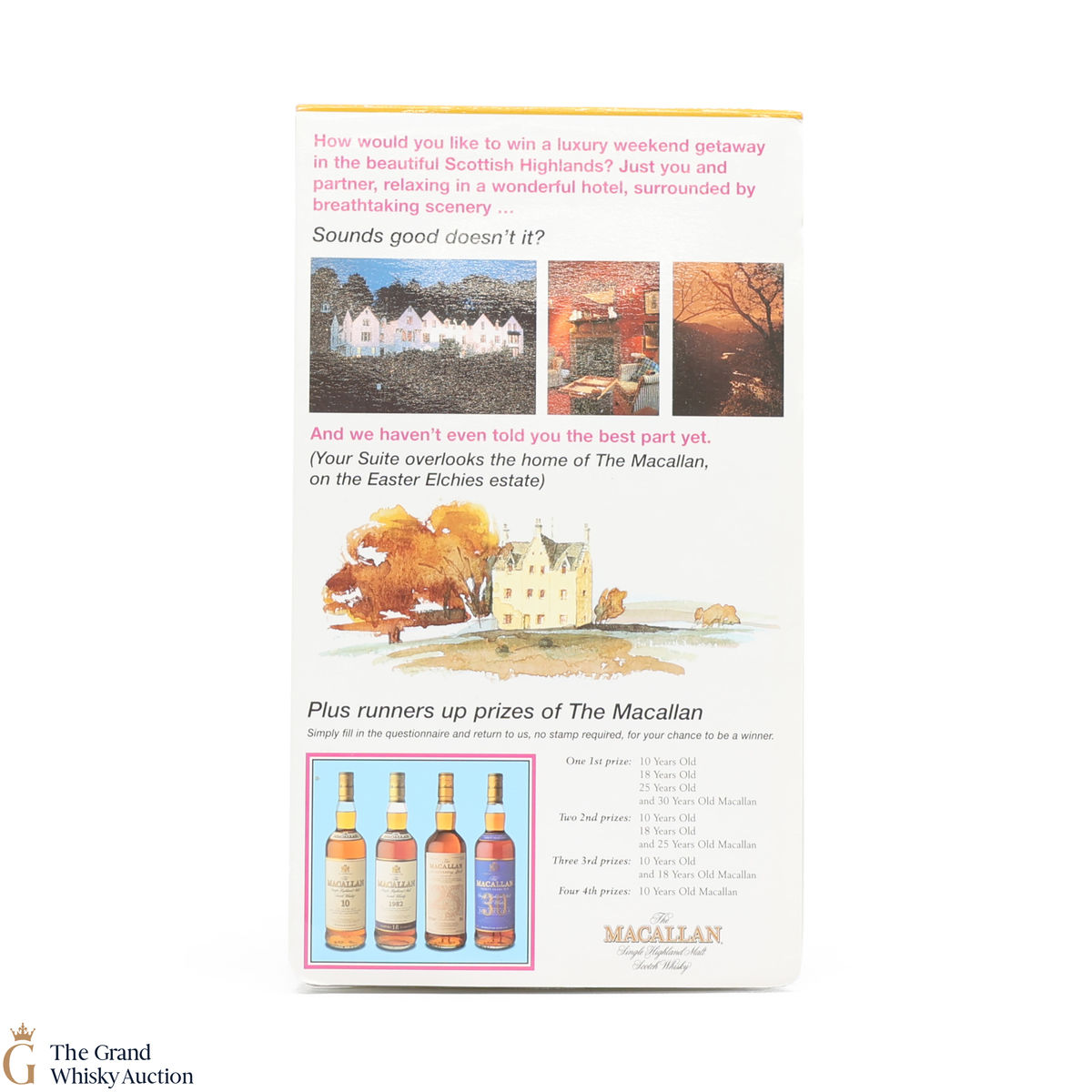 Due to the various ages of bottles and their seals, the condition of liquid is at the buyer's discretion and no claim can be lodged against failure/leakage in transit. Loss and breakage cover is available at 3% of the hammer price as standard. If the lot is not insured, no claim can be lodged against the courier or The Grand Whisky Auction for breakage or loss in transit.