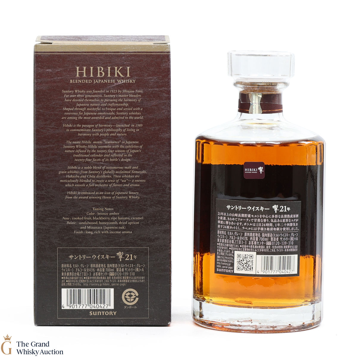 Hibiki 21 Year Old is a very popular blended whisky from Suntory. It is made up of a blend of specially selected mature malt and grain whiskies aged over 21 years. The key Yamazaki sherry casked malt is vatted with other carefully chosen mellow unblended grain whiskies over 21 years old.