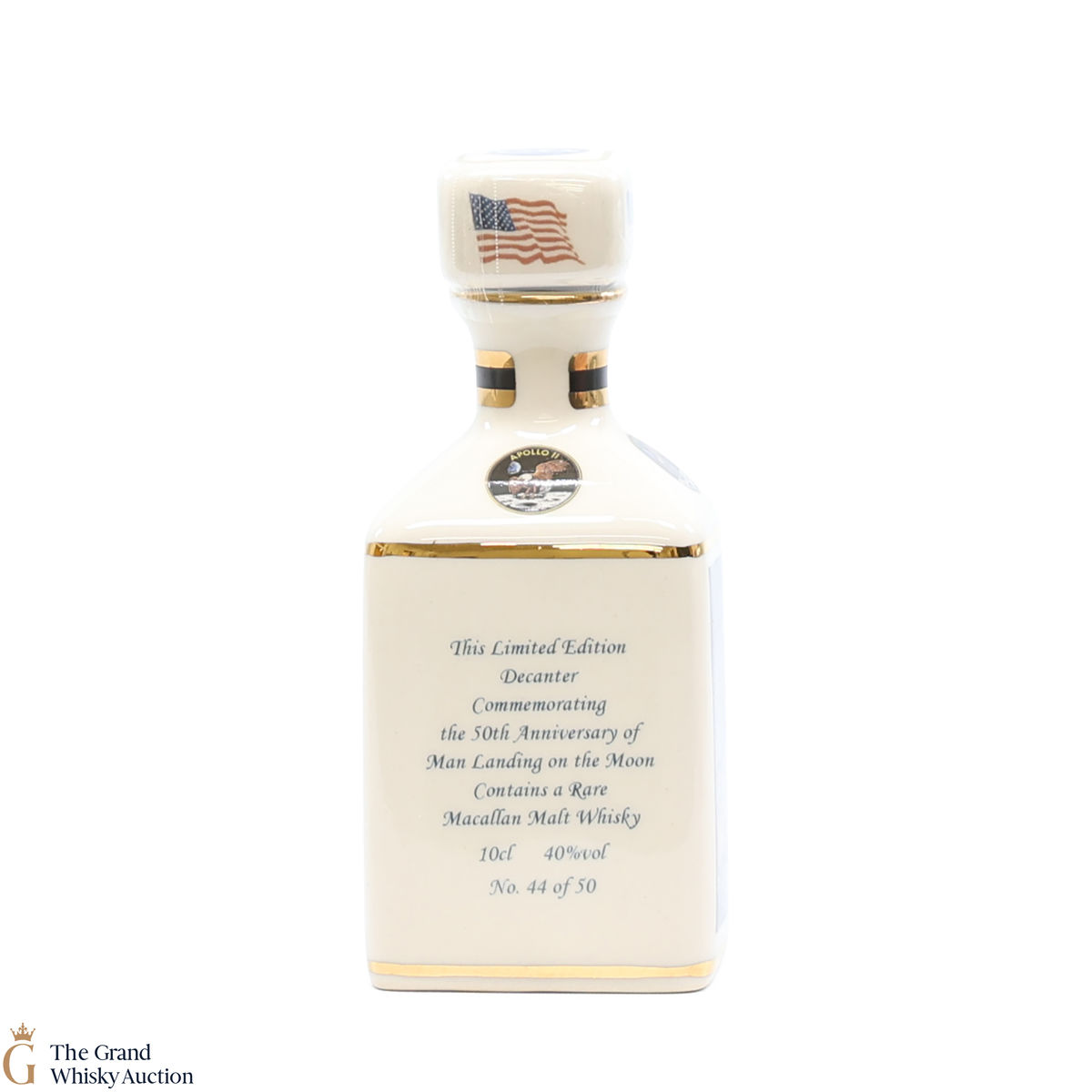 A mini decanter commemorating the 50th anniversary of Man Landing on the moon, Michael Collins. Filled with Macallan, this is one of 50 bottles released.
