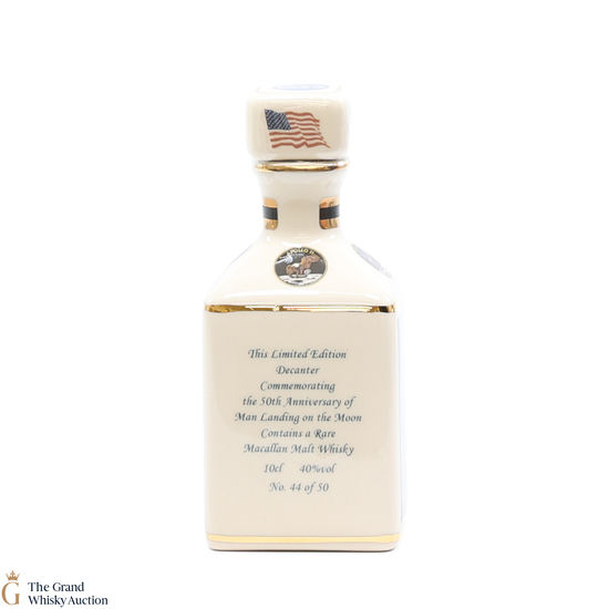 A mini decanter commemorating the 50th anniversary of Man Landing on the moon, Edwin (Buzz) Aldrin. Filled with Macallan, this is one of 50 bottles released.