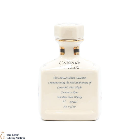 A mini decanter commemorating the 50th anniversary of Concorde's First Flight. Filled with Macallan, this is one of 50 bottles released.