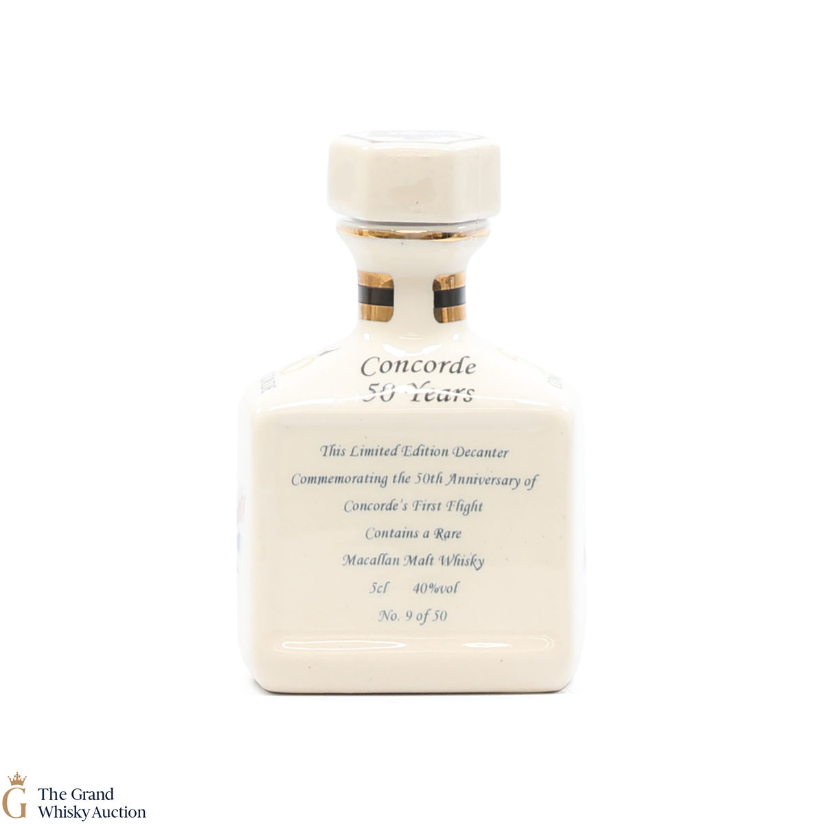 A mini decanter commemorating the 50th anniversary of Concorde's First Flight. Filled with Macallan, this is one of 50 bottles released.