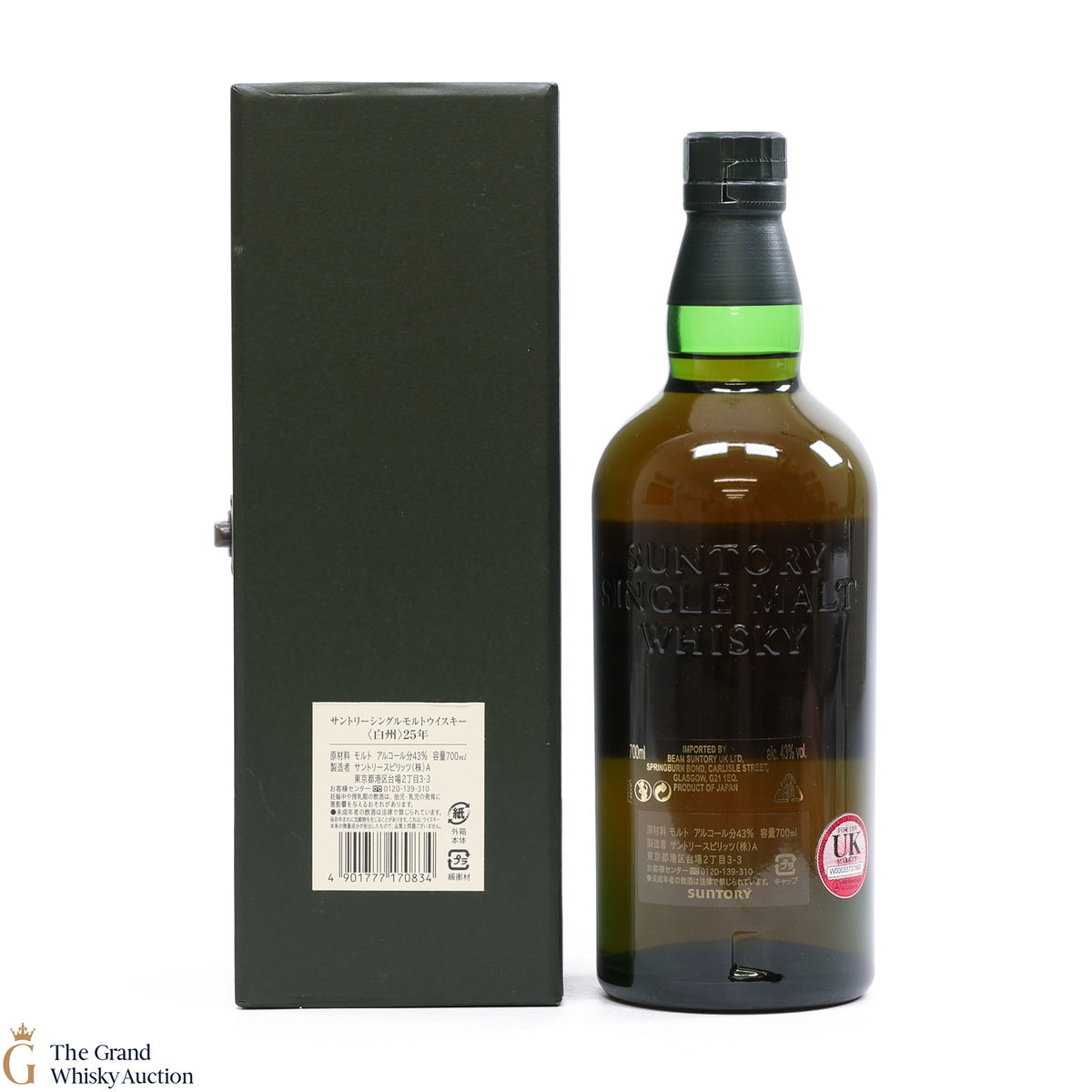 Due to the various ages of bottles and their seals, the condition of liquid is at the buyer's discretion and no claim can be lodged against failure/leakage in transit. Loss and breakage cover is available at 3% of the hammer price as standard. If the lot is not insured, no claim can be lodged against the courier or The Grand Whisky Auction for breakage or loss in transit.
