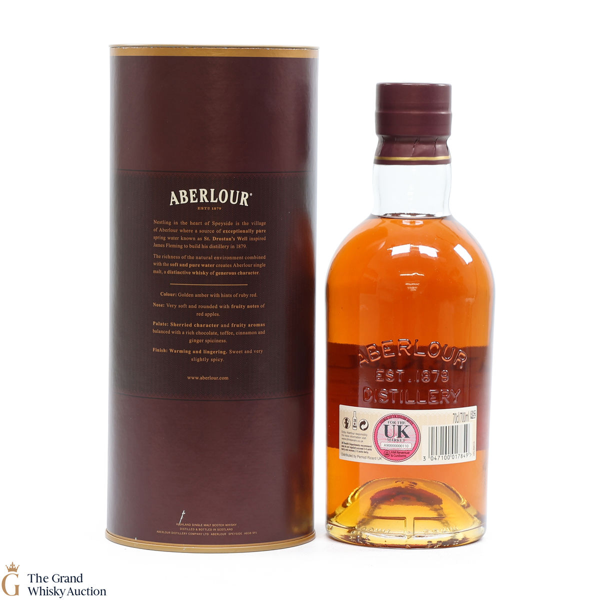 This Aberlour 12 Year Old, has been double cask matured in two handmade oak cask types. The double maturation both traditional oak and sherry casks adds depth of character to this single malt, now bottled at 40% abv.