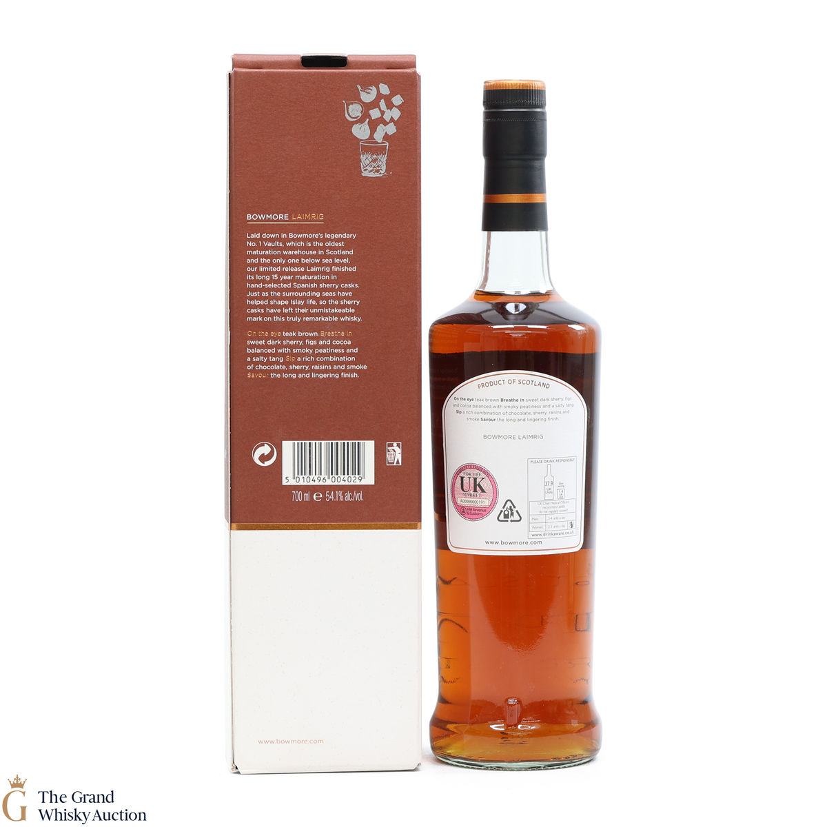 A 15-Year-Old Bowmore was released for the Fèis Ìle 2011 matured exclusively in sherry butts and bottled at cask strength of 53.7%. This is one of just 18000 bottles produced. The bottling has been named 'Laimrig' which is Gaelic for 'Pier' and the bottling celebrates Bowmore's stone pier.